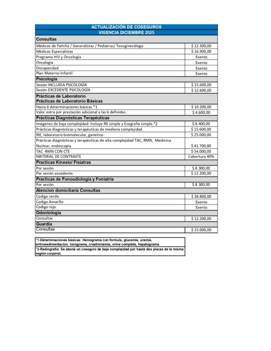 Te compartimos el listado de Coseguros actualizados al mes Diciembre 2025, con aplicación a nivel nacional para nuestra atención